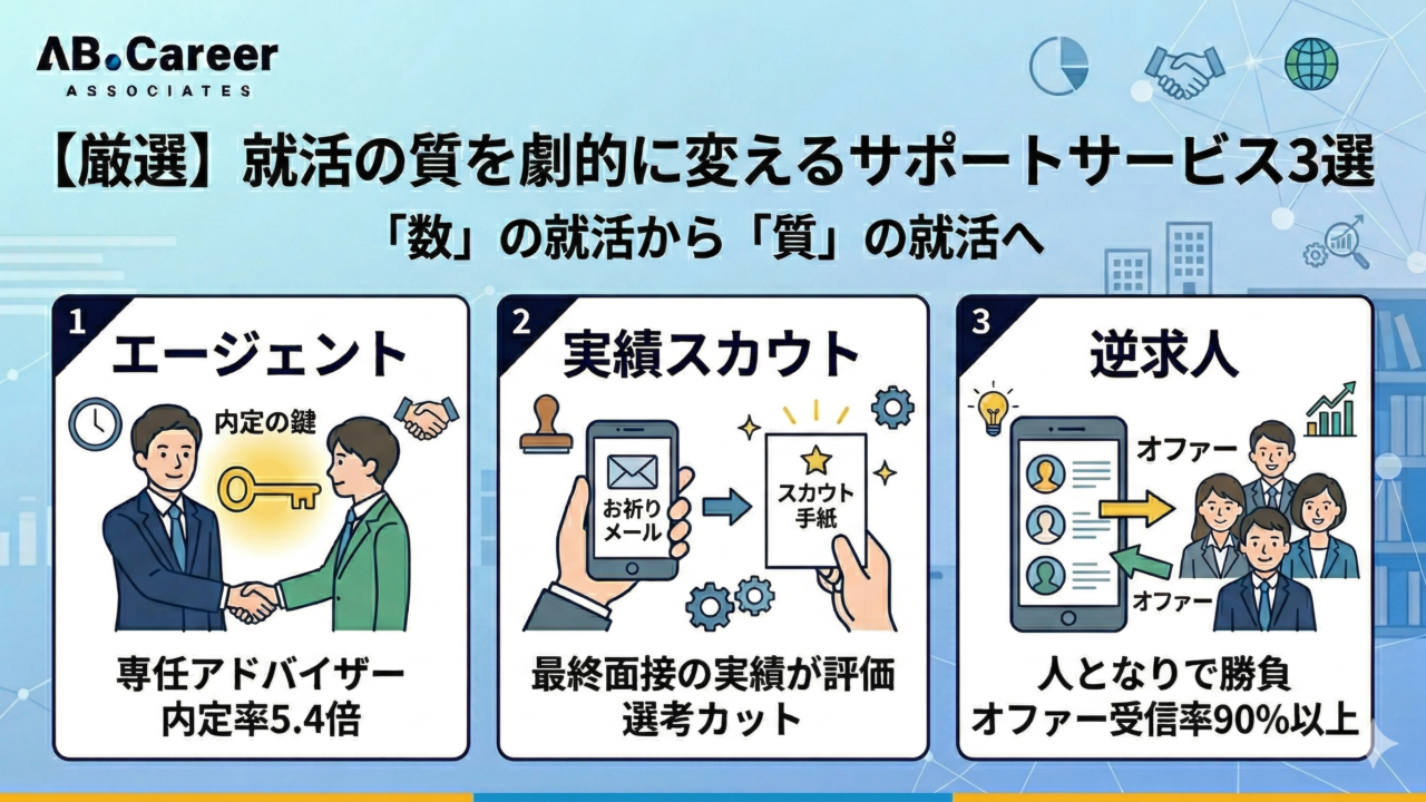 大切なのは、根性論でエントリー数を増やすことではなく、プロの知見や最新の仕組みを賢く使って、就活の「質」を変えることです。